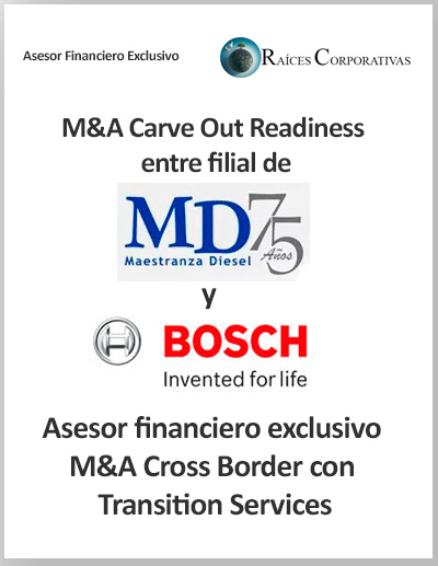 Asesor financiero exclusivo M&A Cross Border de una Business Unit de Maestranza Diesel, en que la compradora fue Bosch Alemania.